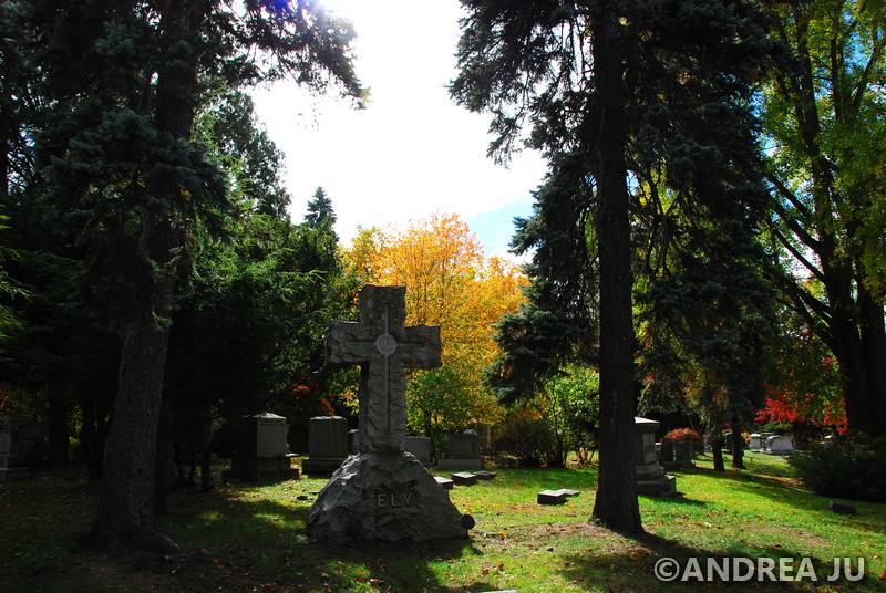 It’s hard to believe there could be restless souls in a cemetery with views I wish I had from my apartment. My first encounter with this place was a fine late October day in 2010. The colors were ripe and vibrant, leaves partially fallen, breeze crisp.