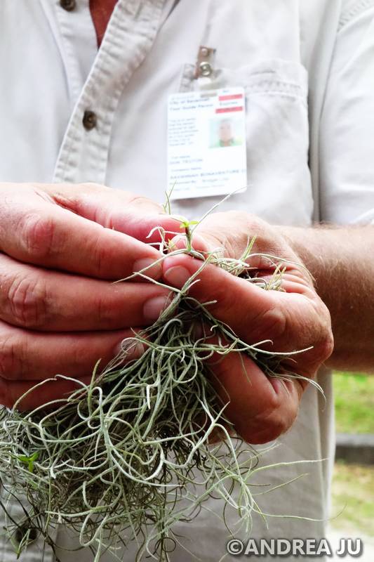 Spanish moss is neither Spanish in origin and it’s not even moss. It’s an air plant that is related to the pineapple. You will see it everywhere on the ground – DO NOT touch it. The ones on the ground have chiggers and you don’t want that itch bothering you. The first Ford car recall was because of Spanish moss.  It was picked up and used for seat stuffing and what they didn’t know at the time was that it had chiggers in it.
