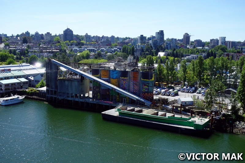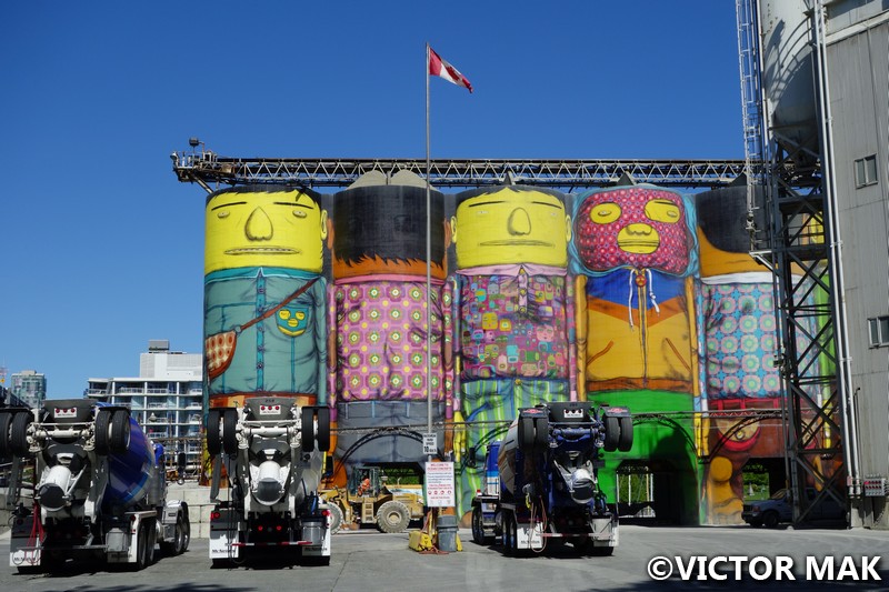 I love industrial areas. One of my favorites back home was the Domino factory on the waterfront in Williamsburg. Part of it was demolished and it’s being turned into condos. Walking to Granville Island, we happened upon this cute industrial site. Cute? Industrial? I liked the murals painted on the cement silos. It’s a public art exhibit by Brazilian twin brothers Gustavo and Otávio Pandolfo. They are known for spray painting characters on buildings and walls. It was created for the Vancouver Biennale. They are a non profit organization whose mission is “To make Public Art accessible, engaging, and motivating to create vibrant and inspired communities.” Quoted from their site.