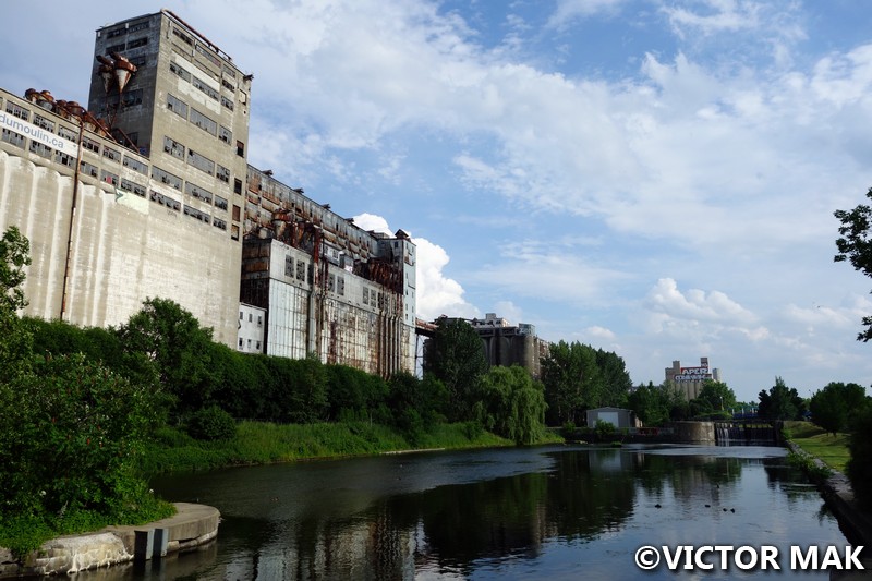 The Malting factory has been abandoned since 1989 when Canadian National stopped rail service to industries in this area of the canal. The clay silos are protected as part of the Lachine Canal National Historic Site.