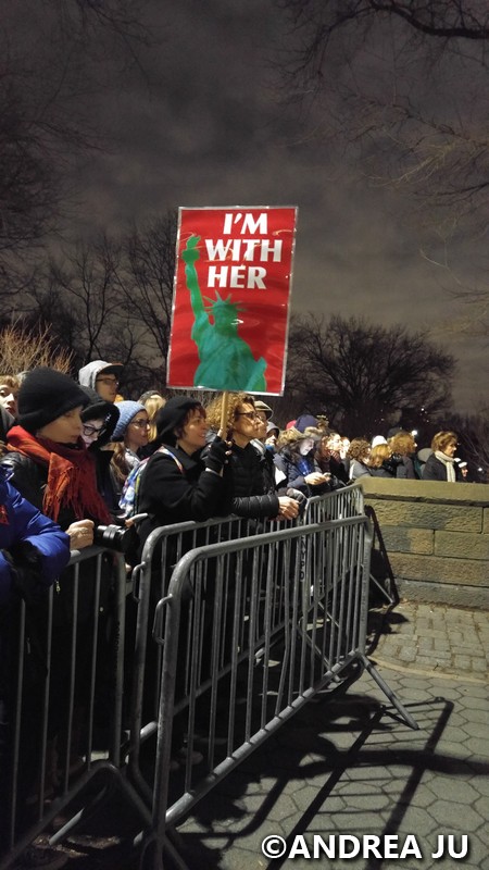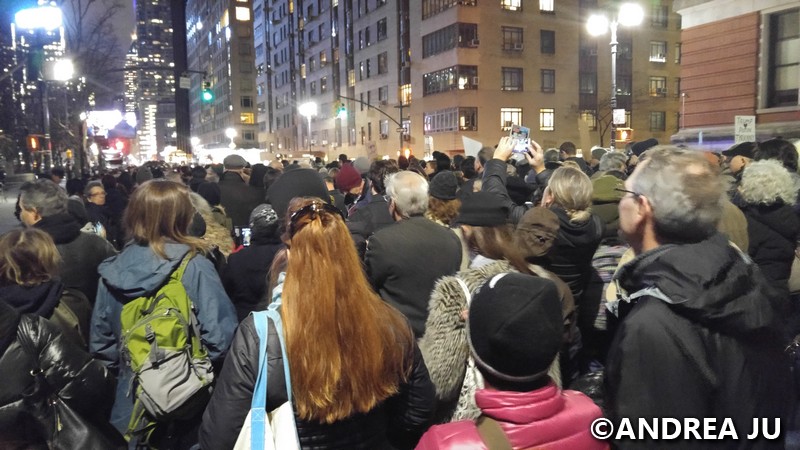 On January 19th at 6pm: Michael Moore, Mark Ruffalo, Alec Baldwin, Robert DeNiro, Cher, Rosie Perez, Cynthia Nixon, Natalie Merchant, & Mayor DeBlasio were some of the people that spoke last night. It was nice seeing everyone come together. There were tears in the audience, we feel sad but even when we’re down, we don’t give up. Considering the rally was put together in a week, the crowd down Central Park West faded into the horizon. It was a sight to see. It was peaceful, it was crowded but not too squished in, people were pleasant and polite.