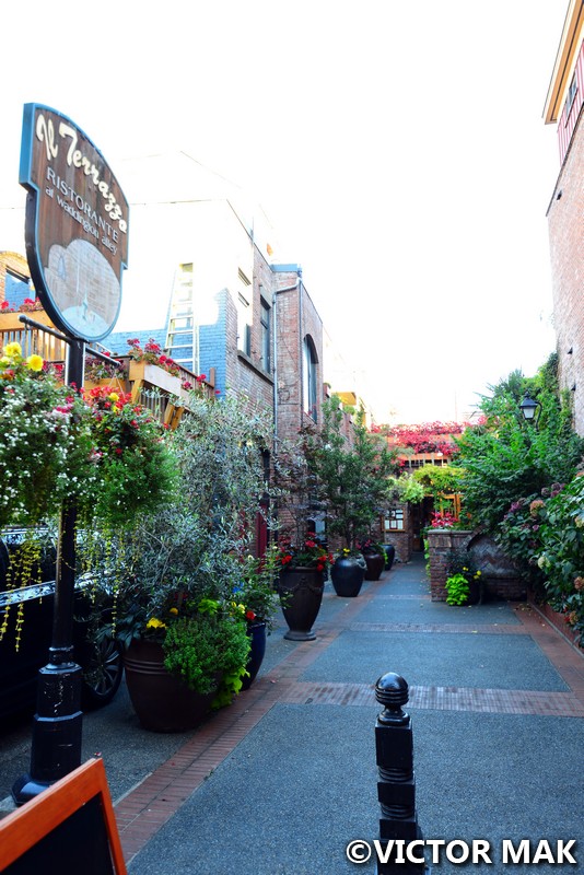 We love the little alleys, they are quaint. This one branches off Waddington Alley.