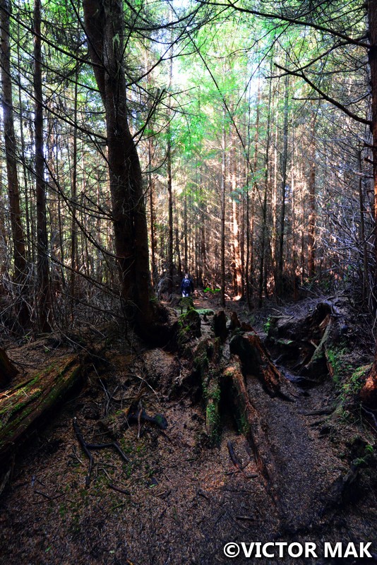 Located 37.6 km in on the Juan de Fuca, Parkinson Creek Trailhead will take you through the woods. This was the first time I used trekking poles and it helped a lot, the forest floor is full of roots and enormous earthen steps (especially if you are short like me).