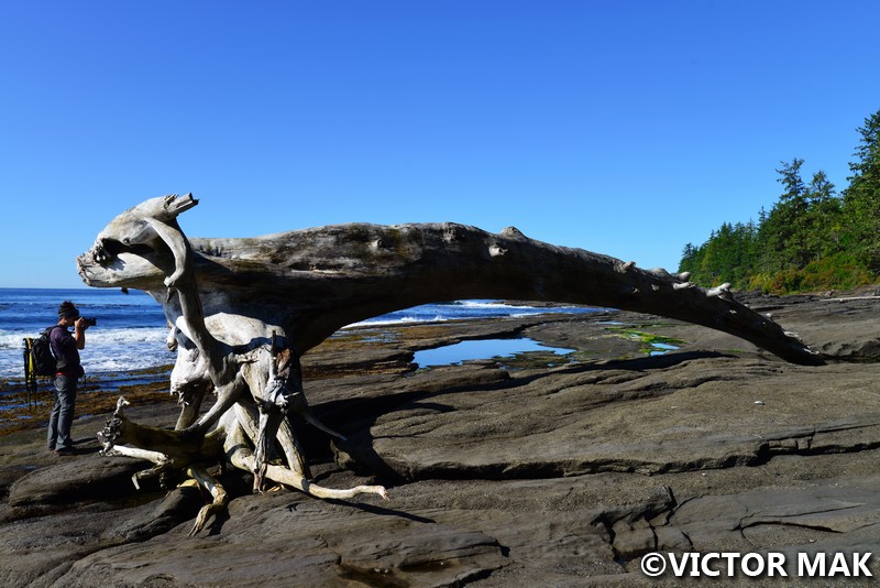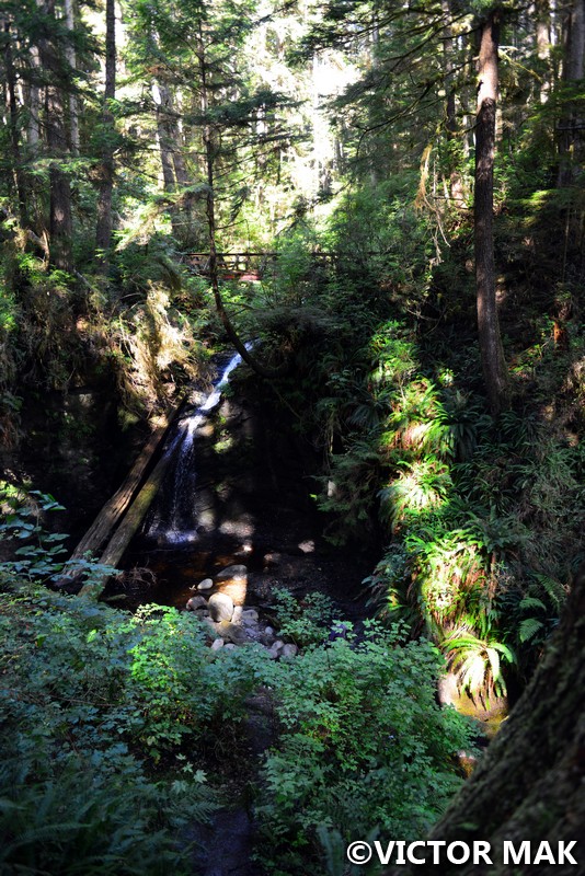 We have been working our way along the Juan de Fuca Trail with Toni on this trip as well (hiked some of it last year). It’s a lovely trail in the very beautiful British Columbia on Vancouver Island. Last year we saw China, Mystic and Sombrio. On this day, we hiked our way through Parkinson Creek Trail to the beach with monster sized drift wood and Payzant Creek with little waterfalls.