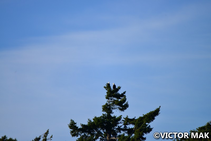 Here are the resident bald eagles! Unfortunately, they were staying very far away, see their tiny heads on the top of the tree?