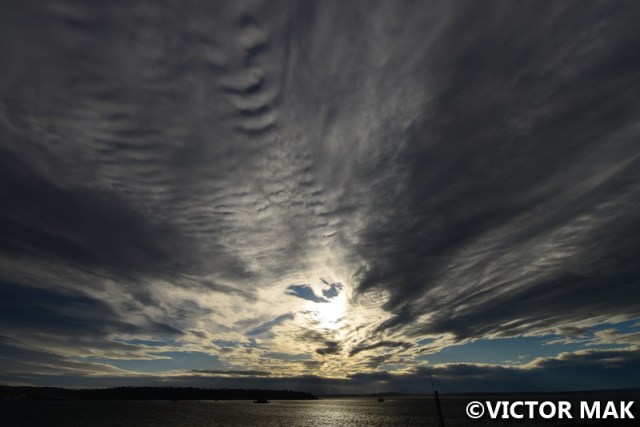 It’s blurry. This was taken through the window on the ferry ride. The moon was low, orange, and looked really cool.