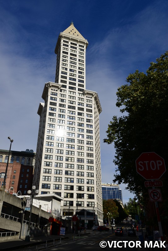 The building is a Seattle landmark. Named after firearm and typewriter magnet, Lyman Cornelius Smith.