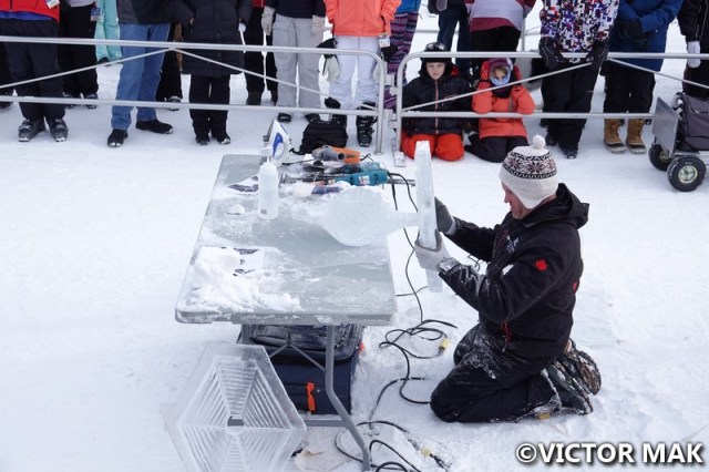 The 1 hour Ice carving contest was impressive, seeing what the artists can create in so little time. This is Anik’s favorite part of the festival.