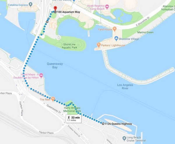 It’s also located 1.1 miles from The Queen Mary Hotel & Attraction where we stayed so it is walkable but if you think it’s far, just take a car. The walk to the ship was safe, we didn’t encounter and homeless encampments along the way, just more hotels and a park. Along the water it’s fixed up but on the opposite side of the road it’s all industrial.